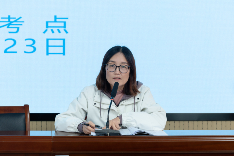 最后,董娜作总结讲话。她强调,一是全体考务工作人员要提高政治站位,将安全保密工作贯穿始终,强化服务意识,深入学习培训内容,确保各项工作零失误;二是各学院要严格把控监考人员选拔标准,组织开展监考专题培训,做好关键事项提醒,为考务工作提供人员保障;三是针对本次自学考试我校考点首次大规模启用考务一体机的情况,考点主任需组织开展专项培训,确保监考人员熟练掌握操作技能,保障考生顺利入场。