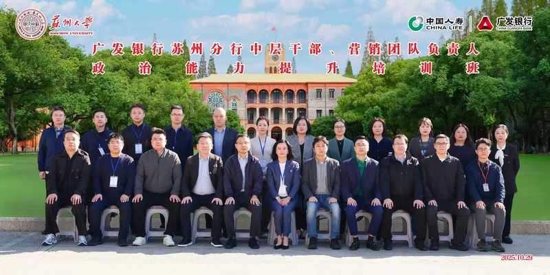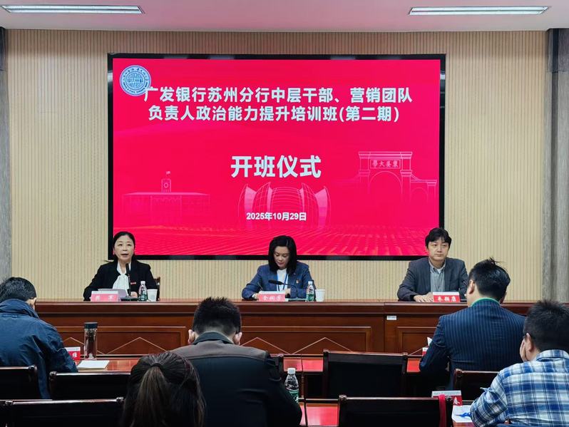 10月29日,广发银行苏州分行中层干部、营销团队负责人政治能力提升培训班(第二期)在我校顺利举办,20多名干部参加了此次培训。广发银行苏州分行人力资源部总经理全娴芳,苏州大学管理培训学院副院长朱颖康出席开班仪式。