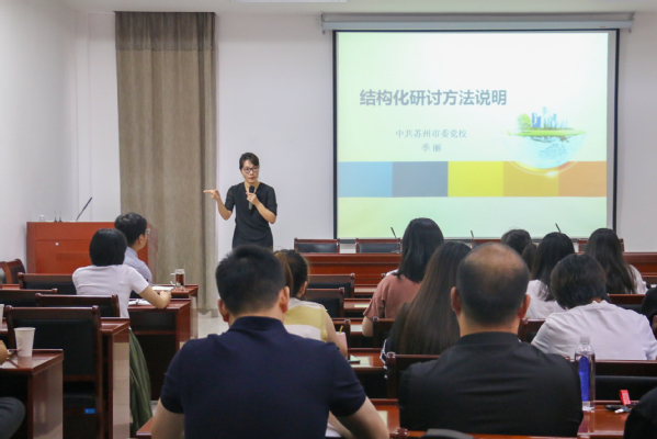 结构化研讨是干部教育培训的一种新途径、新方式,也是我校培训教学改革的重要方向。8日上午,活动邀请中共苏州市委党校季丽老师为大家讲授《结构化研讨方式方法》,季老师从结构化研讨的活动步骤、催化师分工、使用工具等方面入手,讲解了结构化研讨的内涵、研讨方式和使用价值。在交流环节,大家就结构化研讨的具体实操踊跃提问,季老师结合自身经验给予现场辅导,带领大家逐层剖析问题,感受“有步骤、有方法、有引导、有成果”的结构化研讨课程魅力。