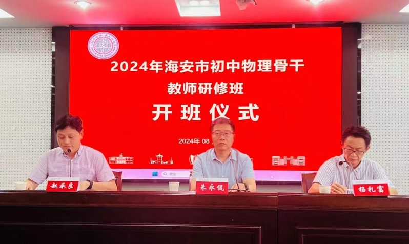 8月12日上午,2024年海安市初中物理骨干教师研修班在苏州大学顺利开班,来自海安市教育局系统的90名管理人员参加了此次培训。海安市教师发展中心副主任朱永侃,苏州大学管理培训学院党委书记杨礼富,苏州大学管理培训学院副院长赵承良出席了开班仪式。开班仪式由管理培训学院副院长赵承良主持。