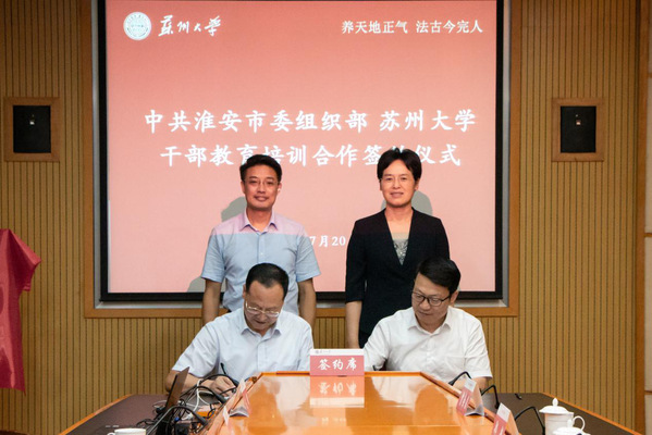 7月20日下午,中共淮安市委组织部与苏州大学干部教育培训合作签约揭牌仪式在苏州大学本部红楼会议中心举行。