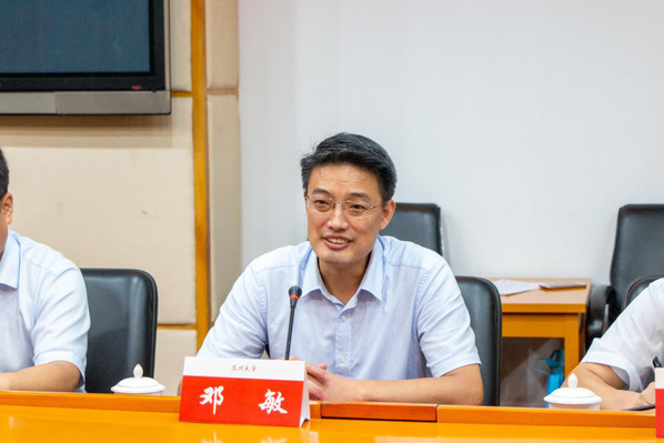 邓敏代表学校对张长金部长一行的到来表示热烈欢迎,并从办学历史、人才培养、科学研究和社会服务等方面简要介绍了我校的基本情况。邓书记表示,本次签约揭牌为双方提供了一次很好的学习、合作、交流的机会,体现了淮安市委组织部对我校的信任,学校将发挥苏州大学专业人才优势,拓宽合作领域,深化合作层次,为助力淮安发展做出贡献。