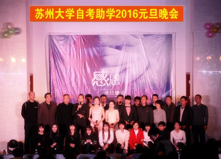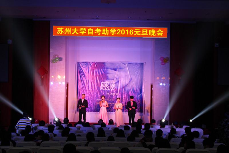 2015年12月22日晚上6点30分,苏州大学自考助学2016元旦晚会在阳澄湖校区大报告厅举行。继续教育处吴建军副处长和部分学院分管自考助学领导、教学秘书、学生工作主管、班主任老师和学生们一起观看了本场以“感恩”为主题的元旦晚会。