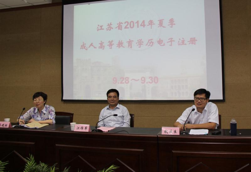 9月28日至30日,来自全省普通高校继续(成人)教育学院、独立设置成人高校及南京大学、东南大学、江南大学网络教育学院负责学历电子注册工作的领导、老师共140余人参加了今年夏季成人高等教育学历电子注册工作,我校党委副书记、副校长江作军,省教育厅学生处处长杭连生,学校继续教育处处长缪世林等出席了工作会议,工作会议由省教育厅学生处副调研员马晓红主持。