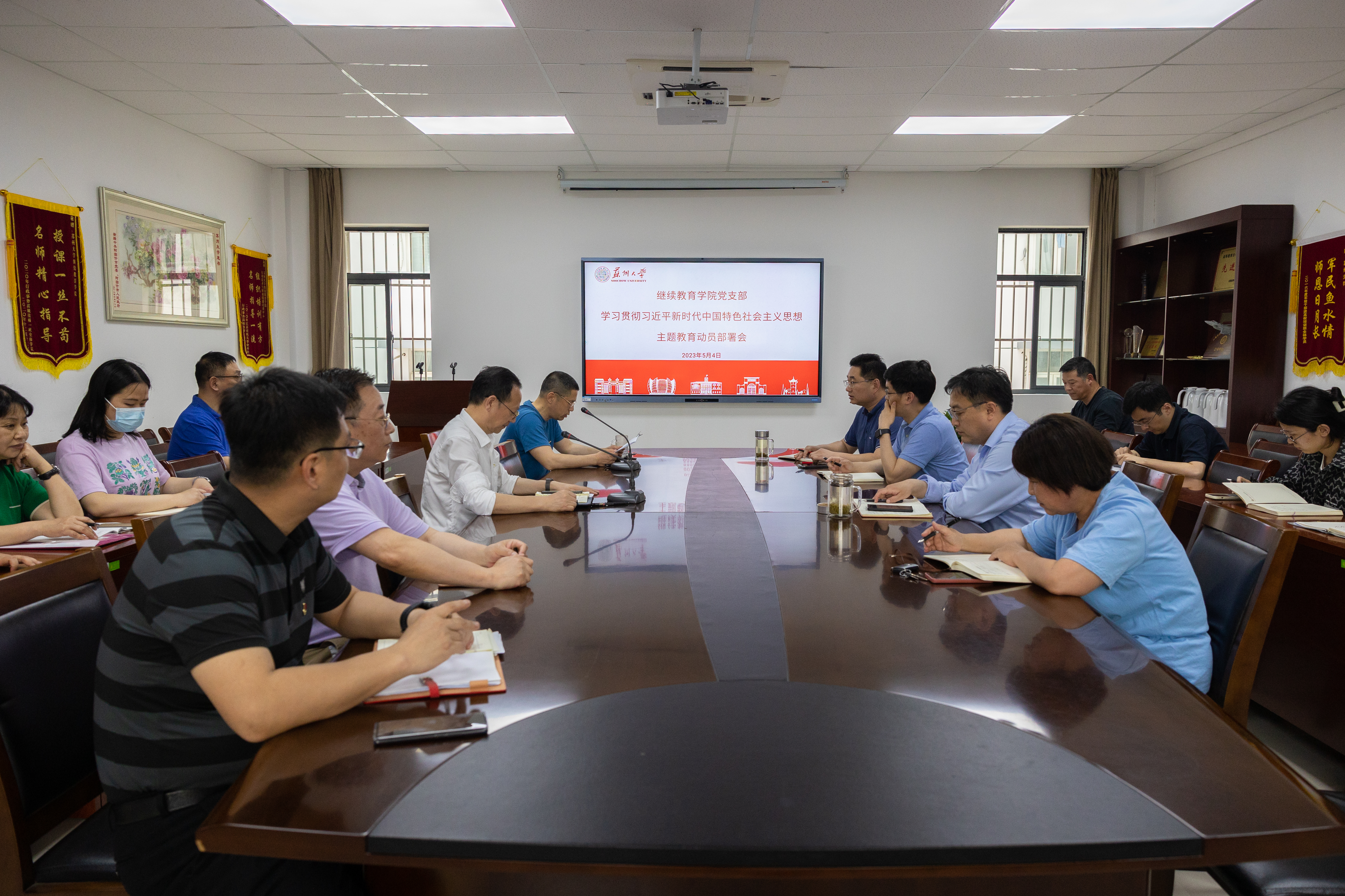为深入贯彻落实党的二十大精神,扎实开展学习贯彻习近平新时代中国特色社会主义思想主题教育,5月4日,继续教育学院党支部在南楼202会议室召开学习贯彻习近平新时代中国特色社会主义思想主题教育动员部署会。党支部书记缪世林主持会议并讲话,党支部副书记王健作动员部署。