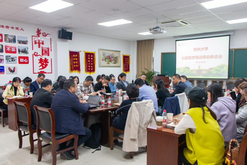 会议开始,苏州大学国际培训学院常务副院长胡龙华从我校出国留学培训项目开展情况、工作成效、存在问题及未来设想等方面作了汇报。