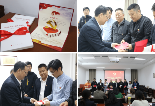 “作为一名共产党员,大家都有两个生日,一个是出生日,以示珍重生命;另一个是政治生日,表达对党忠诚……”伴着温馨的祝福,支部副书记陆惠星邀请9位党员同志上台,支部书记缪世林同志为9位同志送上手书寄语的贺卡,以及支部精心准备的生日礼物——《中国共产党一百年大事记》。