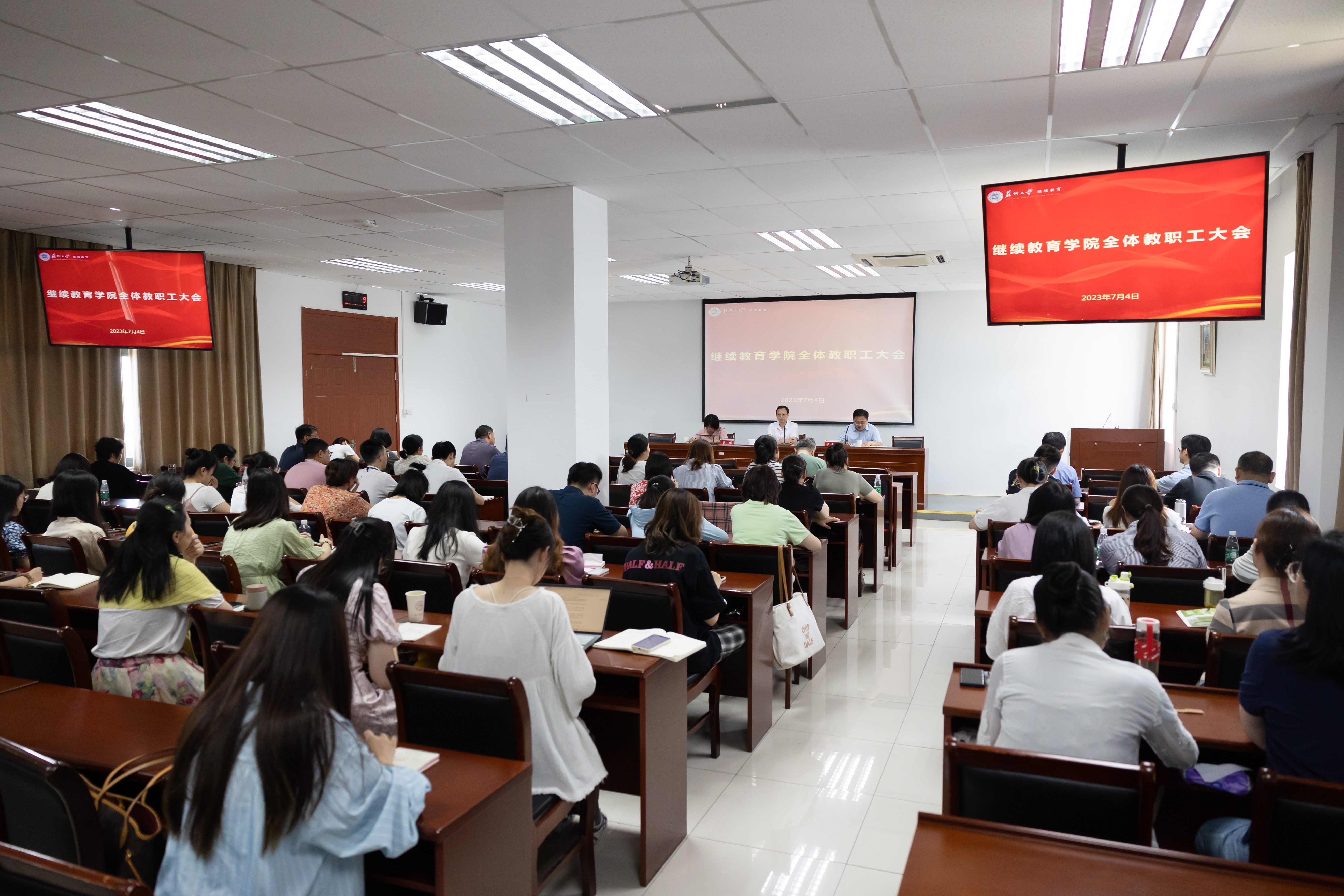 7月4日上午,继续教育学院召开2023年上半年全体教职工大会,总结半年度工作,部署暑假及新学期工作。院长缪世林主持会议,全体教职工参会。
