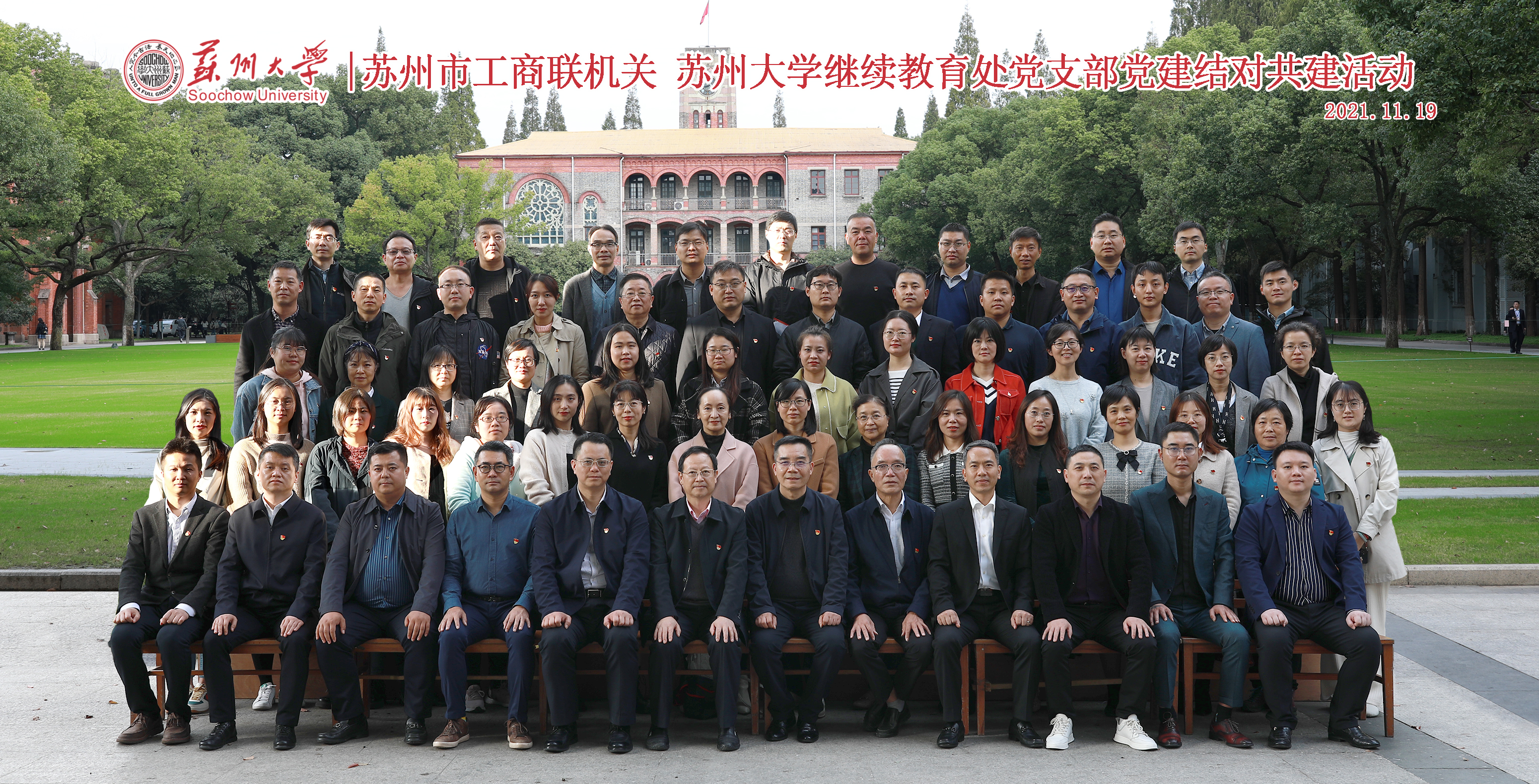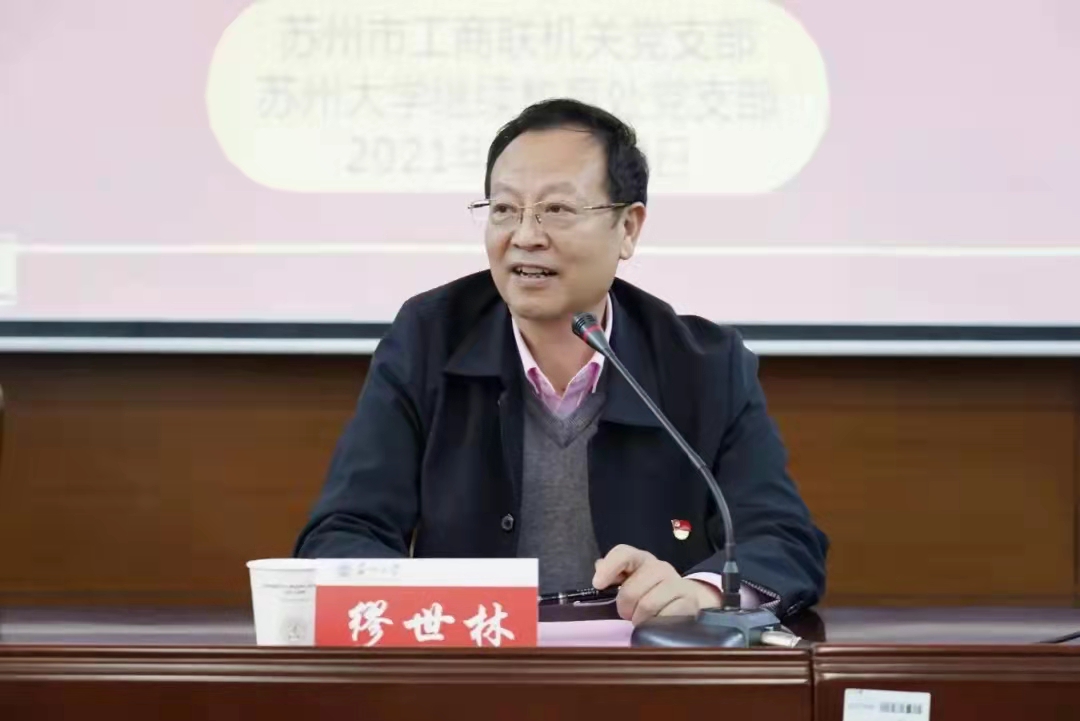 为充分发挥苏州大学继续教育处和苏州市工商联各自的优势和作用,进一步加强苏州市工商联企业家培训基地建设,优化完善校企服务平台,服务和促进“两个健康”,结合党史学习教育“我为群众办实事”“两在两同”建新功行动,11月19日下午,苏州大学继续教育处党支部和苏州市工商联机关党支部共同举办以“党建牵引、服务赋能,共促校企合作平台建设”为主题的党建结对共建活动。