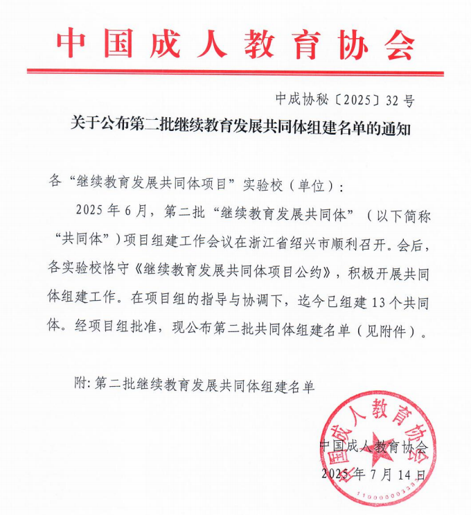 近日,中国成人教育协会公布《关于公布第二批继续教育发展共同体组建名单的通知》,苏州大学获批担任“苏州大学数字技能人才培育共同体”组长单位(以下简称“共同体”),联合全国17所高校、职业院校及教育机构共建继续教育发展新平台。