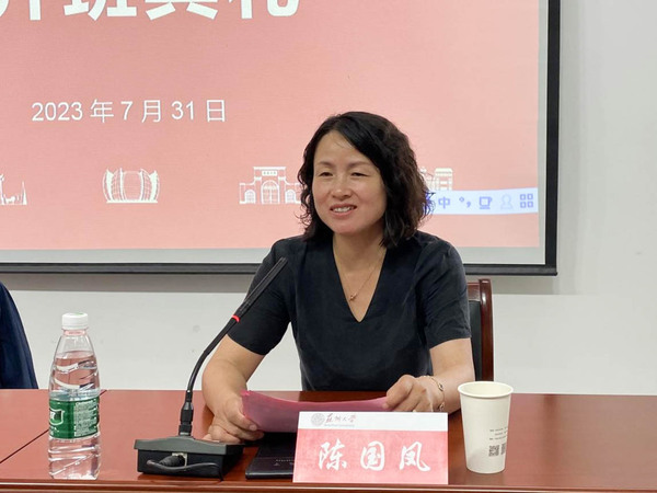 陈国凤首先对学员的到来表示了热烈欢迎,并为培训班的学员们介绍了苏州大学的百年发展历史、办学优势和学科建设成果,包括在人才培训方面的专业特色和优秀师资。希望学员在学习之余能走出校园,看看苏州这座古老与现代交相辉映的千年古城。最后,他预祝本次培训圆满成功,并祝学员们在培训期间学有所得、学以长智、学以养德。