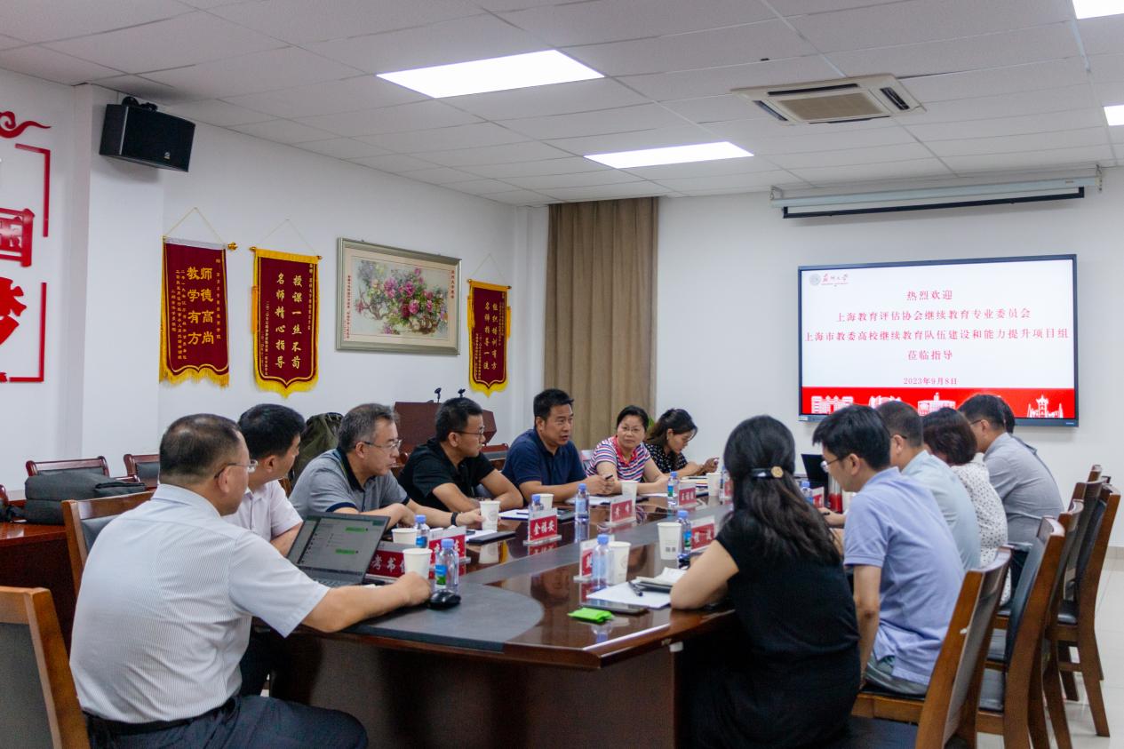9月8日下午,上海市教委终身教育处副处长黄峰带队专题调研我校继续教育工作,上海教育评估协会继续教育专业委员会专家:同济大学继续教育学院院长金福安、副院长考书健,上海交通大学医学院继续教育学院院长王福胜,上海理工大学继续教育学院院长李建东、办学拓展办公室非学历管理科主任孙翠花,上海电力大学继续教育学院院长江晓花陪同调研,我校继续教育学院院长缪世林及相关科室负责人参加交流。