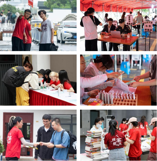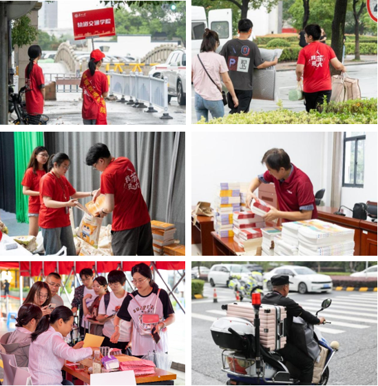 报到当日,由学长学姐、老师、保安大叔、物业阿姨等各部门的工作人员组成的志愿者队伍,成了校园内的风景线。他们迎着风雨,或分发书籍或运送行囊,或答疑解难或指引方向,他们穿梭在校园之中,切实为新生提供便捷、快速的服务。各学院、各部门分工协作,各司其职,全力保障新生报到的流程安全有序,为2023级新生保驾护航。