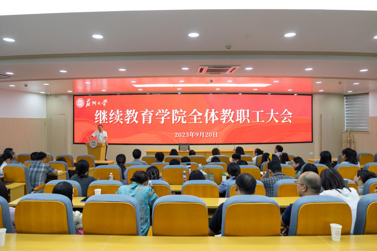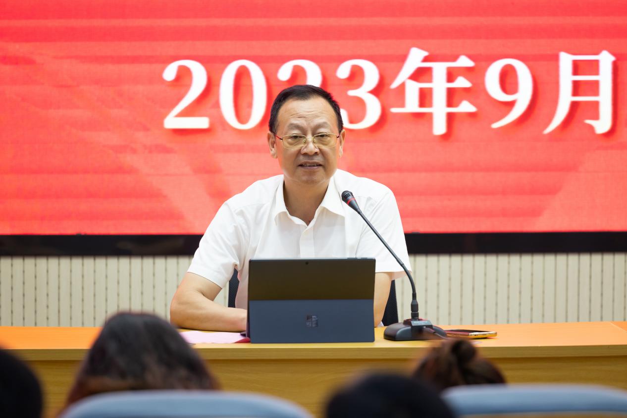 2023年9月20日下午,继续教育学院全体教职工大会在天赐庄校区(北区)工科楼一楼报告厅召开,全院教职工参加了本次会议,会议由缪世林院长主持。