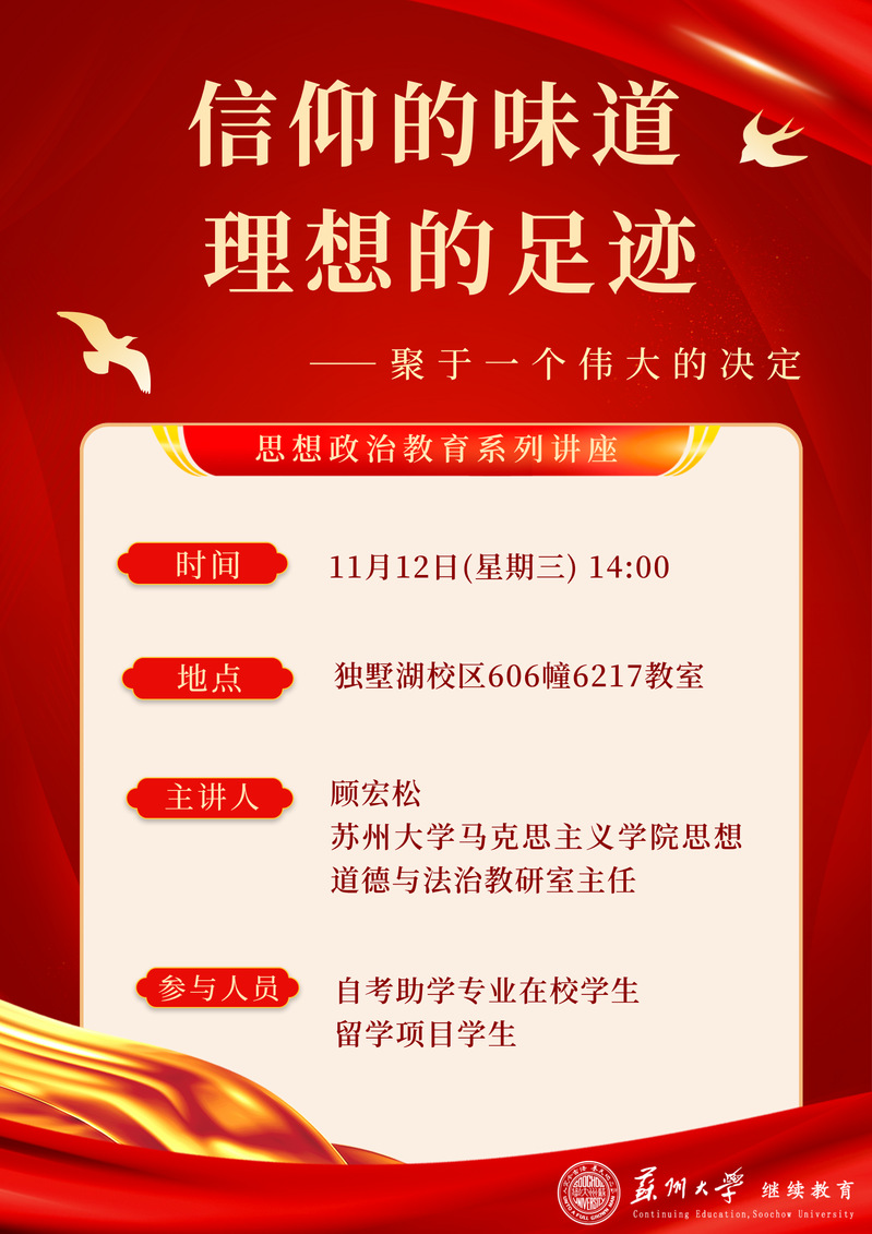 2025年继续教育学院理想信念教育专题讲座——《信仰的味道,理想的足迹——聚于一个伟大的决定》