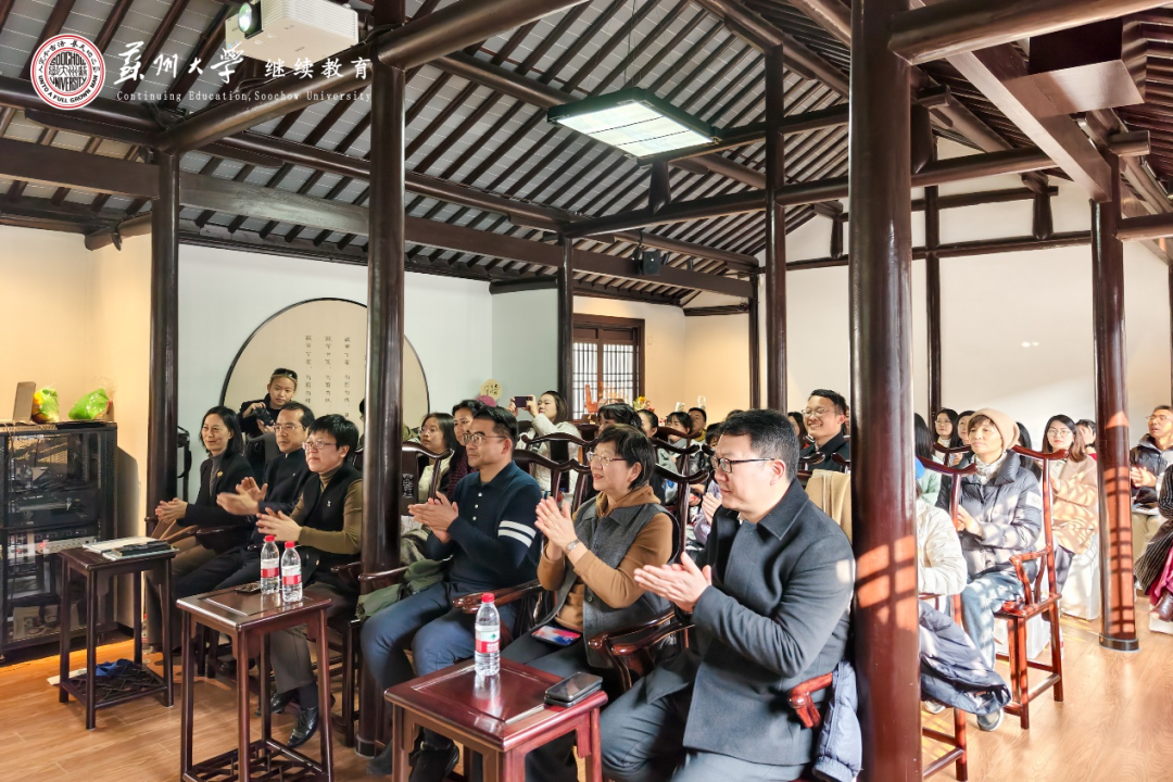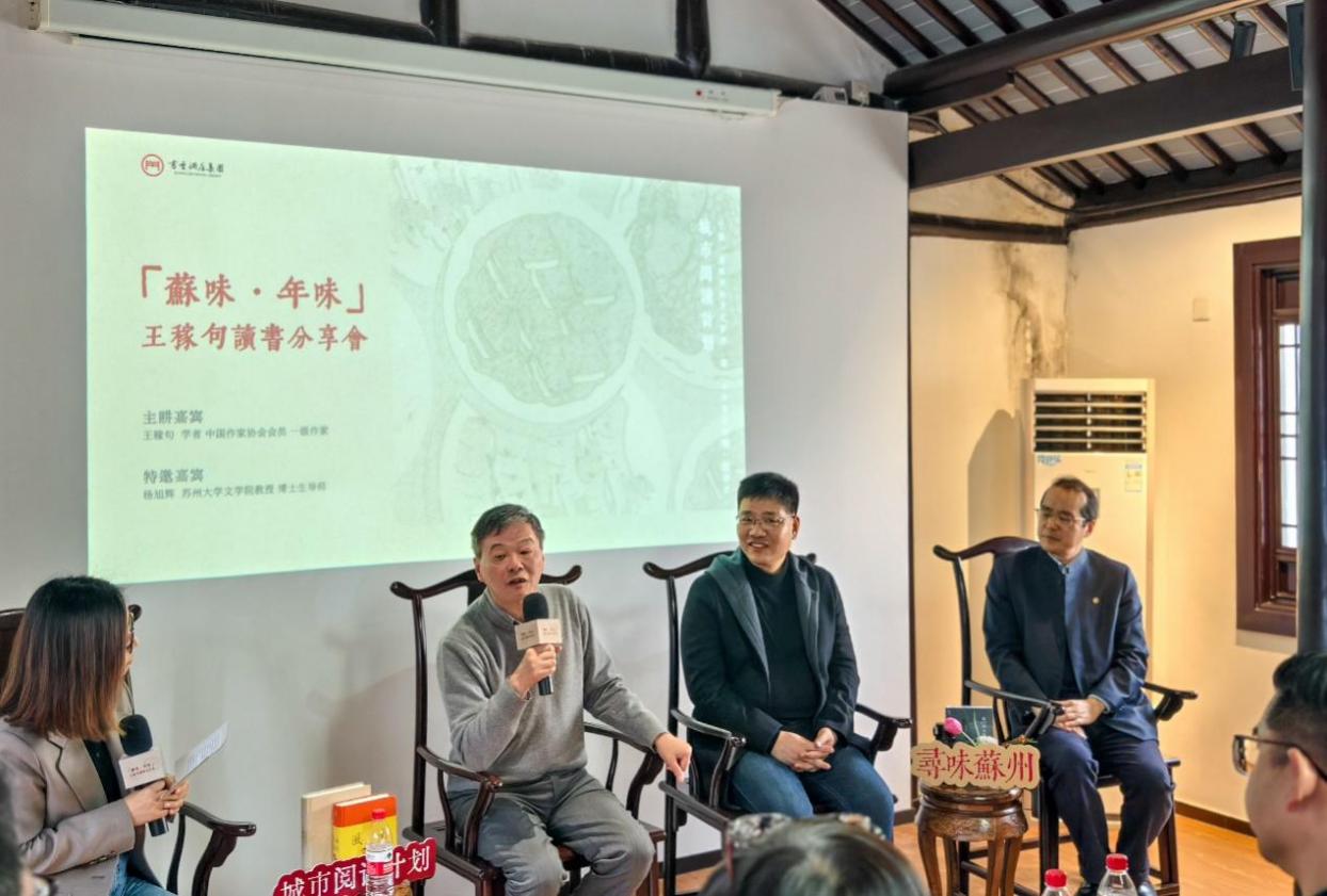 为传承和弘扬苏州传统文化,进一步丰富市民文化生活,新年伊始(1月4日),以“苏味·年味”为题的王稼句读书分享会在苏州市会议中心、况公祠举行。本次活动由苏州大学继续教育学院和苏州书香酒店集团携手举办,通过文学与美食,让参与者深入感受苏州独特的年俗魅力与文化底蕴,吸引了35位参与者踊跃报名,其中特别邀请了20位苏大培训学员,共同开启了一场别开生面的文化之旅。