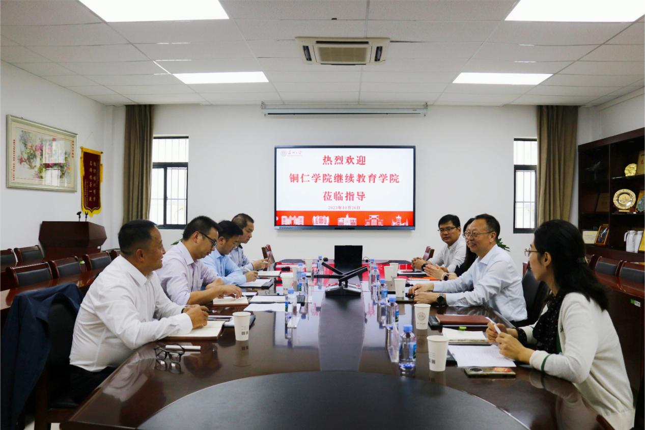 10月26日,铜仁学院继续教育学院院领导成昊、杨忠飞,国际合作与交流处副处长李念,培训中心主任陈波一行四人来校调研。我校继续教育学院院领导缪世林、董娜,国际合作交流处徐雯彦科长,继续教育学院培训部主任陈耀、事业发展部主任鲍小娟参加调研。