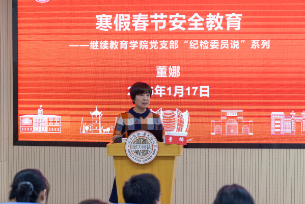 随后,继续教育学院副院长董娜从校园安全、信息安全、交通安全、师德师风等四个方面对全院教职工开展了生动的纪检委员说,提升了教职工安全意识,确保大家度过一个平安祥和的寒假与春节。并领学了2025年全国教育工作会议要点,解读了2025年教育工作七项重点任务和四个方面抓落实,为新一年更好地开展教育教学工作奠定了坚实基础。