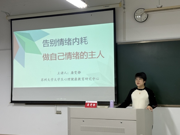 苏州大学大学生心理健康教育研究中心屠雯静老师以“告别情绪内耗,做自己情绪的主人”为主题开展了心理健康教育讲座。讲座中,屠老师系统讲解了情绪的基本概念,助力学生深入理解并清晰识别自身情绪状态。她结合现实案例,全面剖析了大学生在学习与生活中所面临压力的来源、表现形式及其潜在影响,引导学生认识到情绪管理的重要性与必要性。在讲座的最后部分,屠老师重点分享了科学管理情绪的方法,并建议同学们应学会恰当地表达情绪、合理转移注意力,以及通过健康方式释放情绪,从而真正成为情绪的主人。