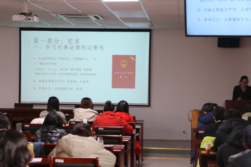 苏州大学王健法学院刑法教研室主任,硕士学科点带头人陈珊珊作《常见犯罪类型及预防对策》的讲座,陈主任从日常生活中的案例出发,解读了相关法律政策。
