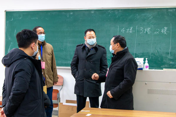 考试期间,校党委常委、副校长姚建林巡视了各考点,查看各考点的各项准备工作,对考试中的疫情防控措施、考试安全保密及考务安排等工作做了进一步指导,并要求各考点要严肃考风考纪,尽心尽力、尽职尽责,落实落细各项工作,为广大考生提供细致周到的服务,确保考试顺利进行。同时,对在疫情防控背景下连续坚守的各考点工作人员表示感谢和慰问。