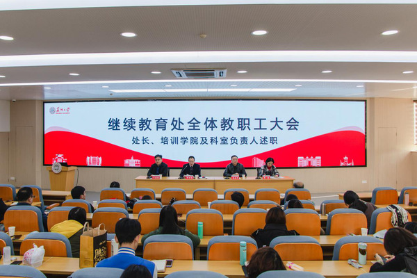 2021年1月15日下午,继续教育处全体教职工大会在北校区工科楼一楼大报告厅召开,会议由继续教育处缪世林处长主持。