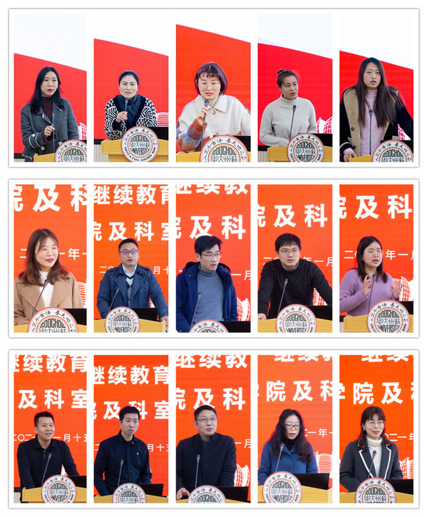 随后,缪世林处长、胡龙华副处长、王建凯副处长、常静副处长分别做个人述职。各培训学院、科室负责人分别代表部门进行述职,大家在中心工作中熟悉彼此业务,在特色亮点中交换思想,在总结回顾中吸取经验,在相互交流中促进发展。继续教育处2020年新入职的五位老师分享了入职以来的感受和思考。