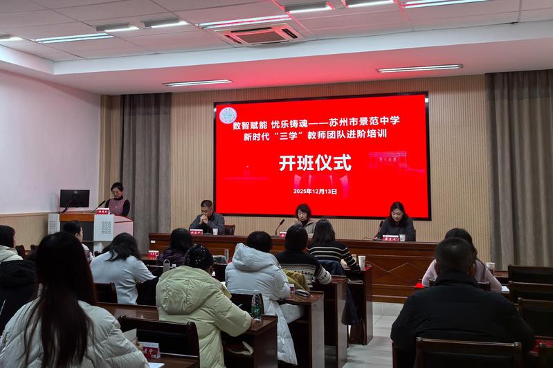 12月13日上午,数智赋能 忧乐铸魂——苏州市景范中学新时代“三学”教师团队进阶培训在我校顺利开班。来自苏州市景范中学的43位老师参加本次培训。苏州市景范中学校校长徐达娴,苏州市景范中学校副校长孙彥华,苏州大学光电科学与工程学院党委书记龚呈卉出席了开班仪式,仪式由苏州大学管理培训学院班主任杨绮文主持。