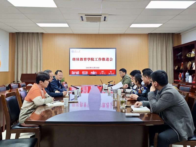 2025年12月10日下午,苏州大学继续教育学院“百日奋战”工作推进会在继续教育学院南楼202会议室顺利召开。校党委常委、副校长姚建林莅临指导并作重要讲话,继续教育学院院长缪世林主持会议。学院各业务部门负责人围绕“百日奋战”期间的目标任务推进情况、问题分析与后续规划进行了系统汇报。