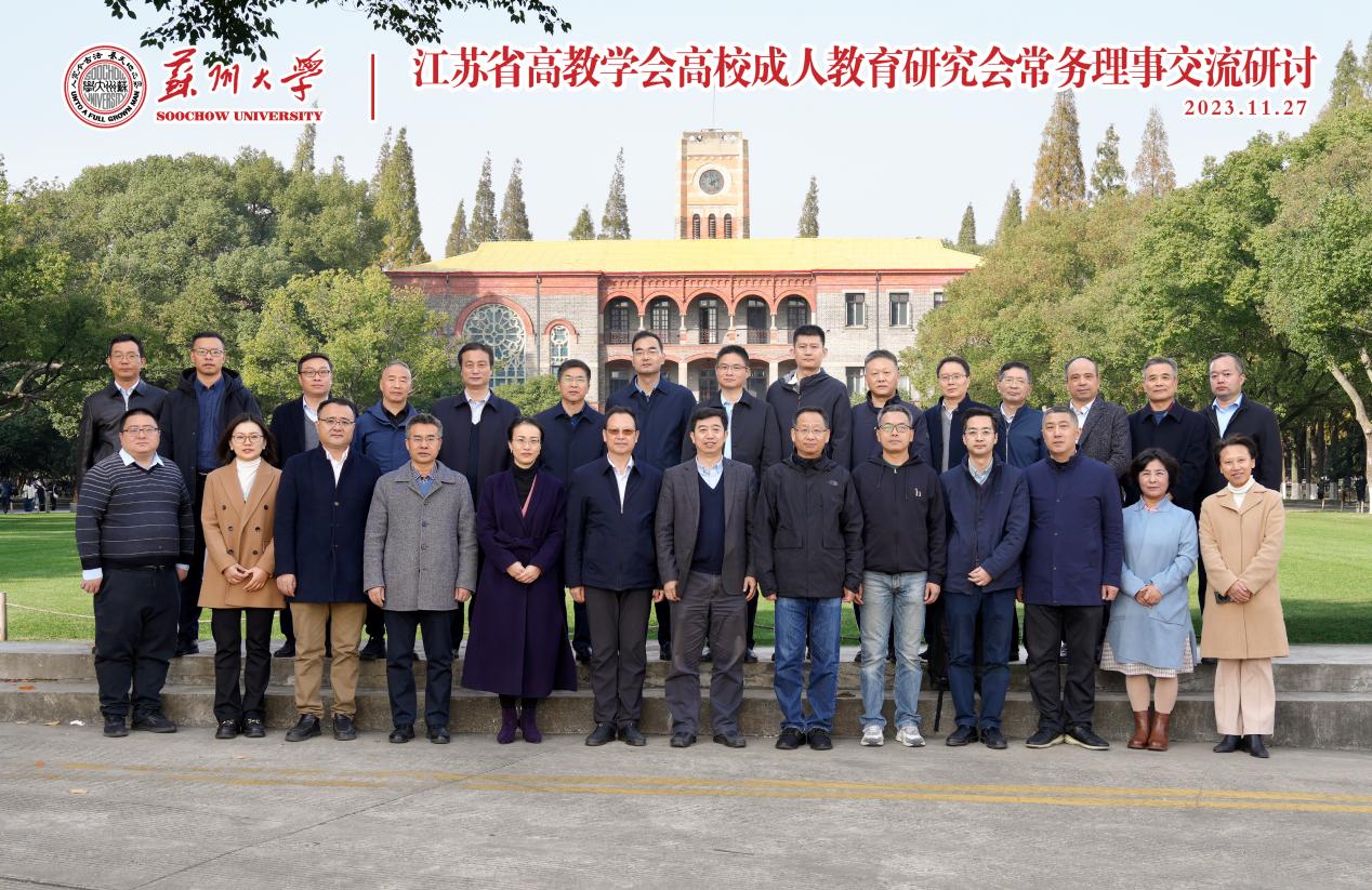 11月27日,江苏省高教学会高校成人教育研究会理事长、南京大学终身教育学院院长韩顺平带队,研究会常务理事、江苏高校继续教育学院院长共26人走进苏州大学天赐庄校区,专题调研继续教育工作,活动由研究会秘书长、南京大学终身教育学院副院长闵红平主持。