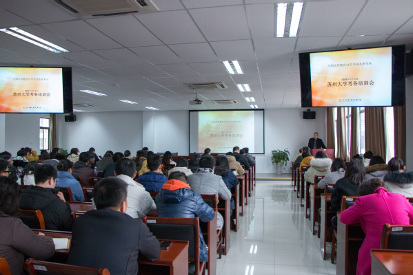 1月2日下午,2020年1月高等教育自学考试苏州大学考务培训会在我校继续教育处南楼205教室举行,我校邀请苏州市教育考试院自考处处长施金锋为本次参与考试的考务工作人员进行培训,各考区主考、考务组长及工作人员参加了此次培训。