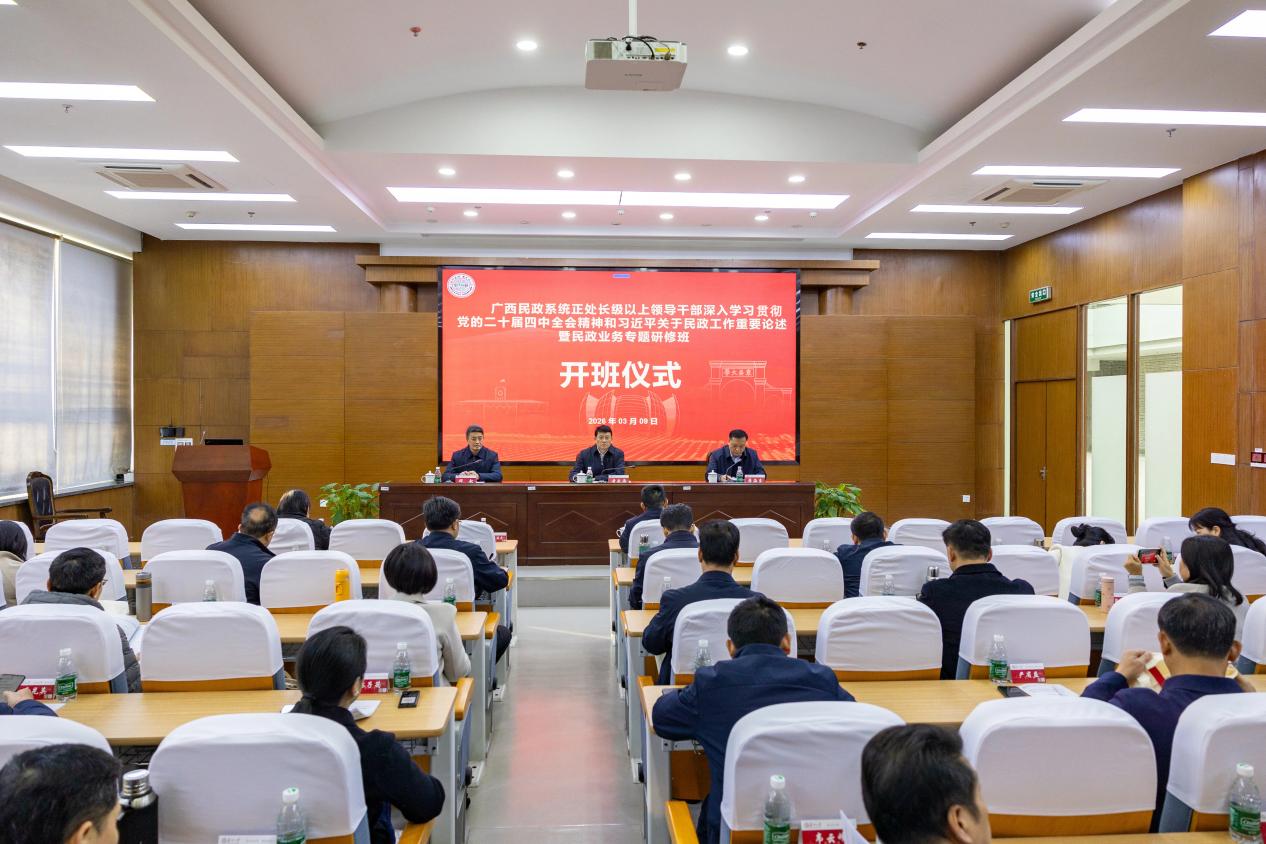 为深入学习贯彻党的二十届四中全会精神,全面落实习近平总书记关于民政工作的重要论述,纵深推进广西“暖心民政”三年行动,助力全区民政事业高质量发展。3月9日,广西民政系统正处长级以上领导干部深入学习党的二十届四中全会精神和习近平关于民政工作重要论述暨民政业务专题研修班在我校顺利开班,来自广西民政系统的44名领导干部参加了此次培训。广西壮族自治区民政厅党组书记、厅长黄武海,党组成员、副厅长蒋海东,苏州大学党委副书记邓敏出席了开班仪式。