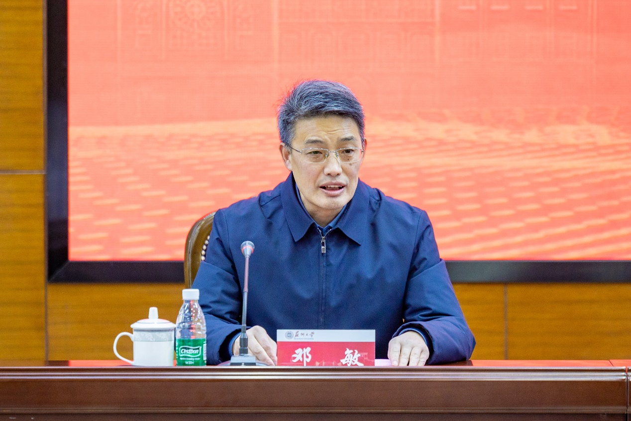 邓敏致欢迎辞。他代表苏州大学对全体学员表示热烈欢迎,并介绍了苏州大学的百年办学历史,包括我校在学科建设、人才培养与社会服务等方面取得的成果。随后,他重点介绍了苏州大学继续教育学院(海外教育学院)在干部培训领域的长期积淀与专业优势。他表示,学院高度重视此次培训,将依托高校优质师资,精心组织教学,确保培训质量,全力做好培训服务保障工作,助力广西民政干部提升政治能力、思维能力与实践能力。
