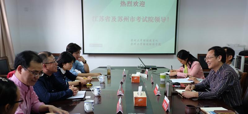10月15日,江苏省教育考试院李汉东副处长一行4人来校调研自学考试工作,苏州市教育考试院潘纯瑶副院长陪同。继续教育处缪世林处长、吴建军副处长及相关科室人员参加。
