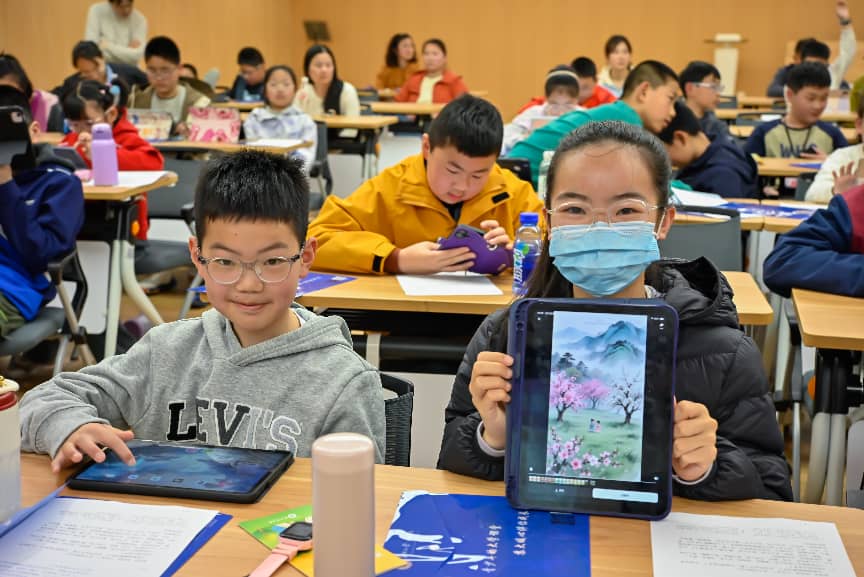 3月22日,“诗画奇旅・智绘童行”亲子研学公益活动在校内拉开帷幕,30组家庭共同参与。活动依托AI赋能传统文化创作,将古诗文化与人工智能技术融合创新。孩子们在教师指导下,借助AI工具将经典诗句转化为生动的画面与影像,在动手实践中培育创新思维与文化自信,提前规划春假科教实践方向。