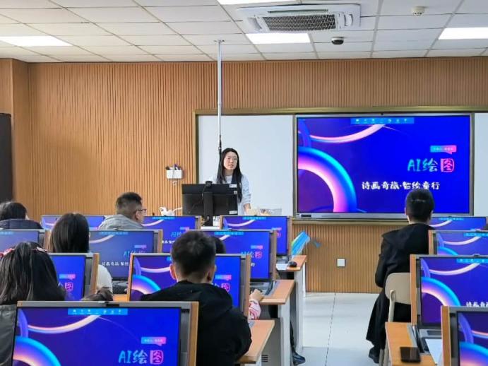 4月2日,学院将优质教育资源延伸至公共文化服务阵地,携手苏州图书馆举办“春之韵”AI创作工坊。活动以初中语文课本春日经典篇目为创作蓝本,运用“即梦AI”“豆包”等轻量化工具,引导初中生将文本意象转化为AI诗画与影像作品。零门槛的操作方式让每位学生都能轻松上手,在文本共情与审美提升中感悟文学与科技的交融。