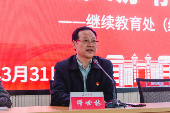 继续教育处党支部书记、继续教育处处长缪世林指出,关于党史学习,要提高思想站位,立足实际、守正创新,高标准高质量完成学习教育各项任务,通过学习多思考、多感悟、办实事、开新局,继续教育处将以支部共建等多种形式丰富学习活动,推动党史教育入脑入心。