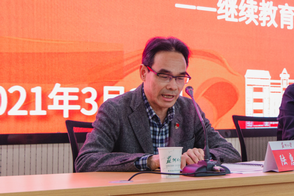 2021年3月31日下午,苏州大学继续教育处(继续教育学院)新学期教职工大会在苏州大学北校区工科楼一楼大报告厅召开,继续教育处全体教职工参加会议,会议由继续教育处缪世林处长主持。
