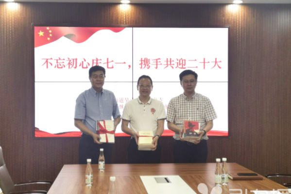 火红七月映初心,联学共建谋新篇。为庆祝中国共产党成立101周年,喜迎中共二十大胜利召开,6月30日下午,继续教育学院党支部联合农工党吴中区基层委、越溪街道吴山社区党总支开展三方联学共建活动,共听老兵讲红色故事,互赠党史学习书籍,畅谈三方共建设想。继续教育学院党支部书记缪世林,越溪街道吴山社区党总支书记蔡晓学,农工党吴中区基层委副主委、吴中区综合支部主委张忠锋等参加活动。