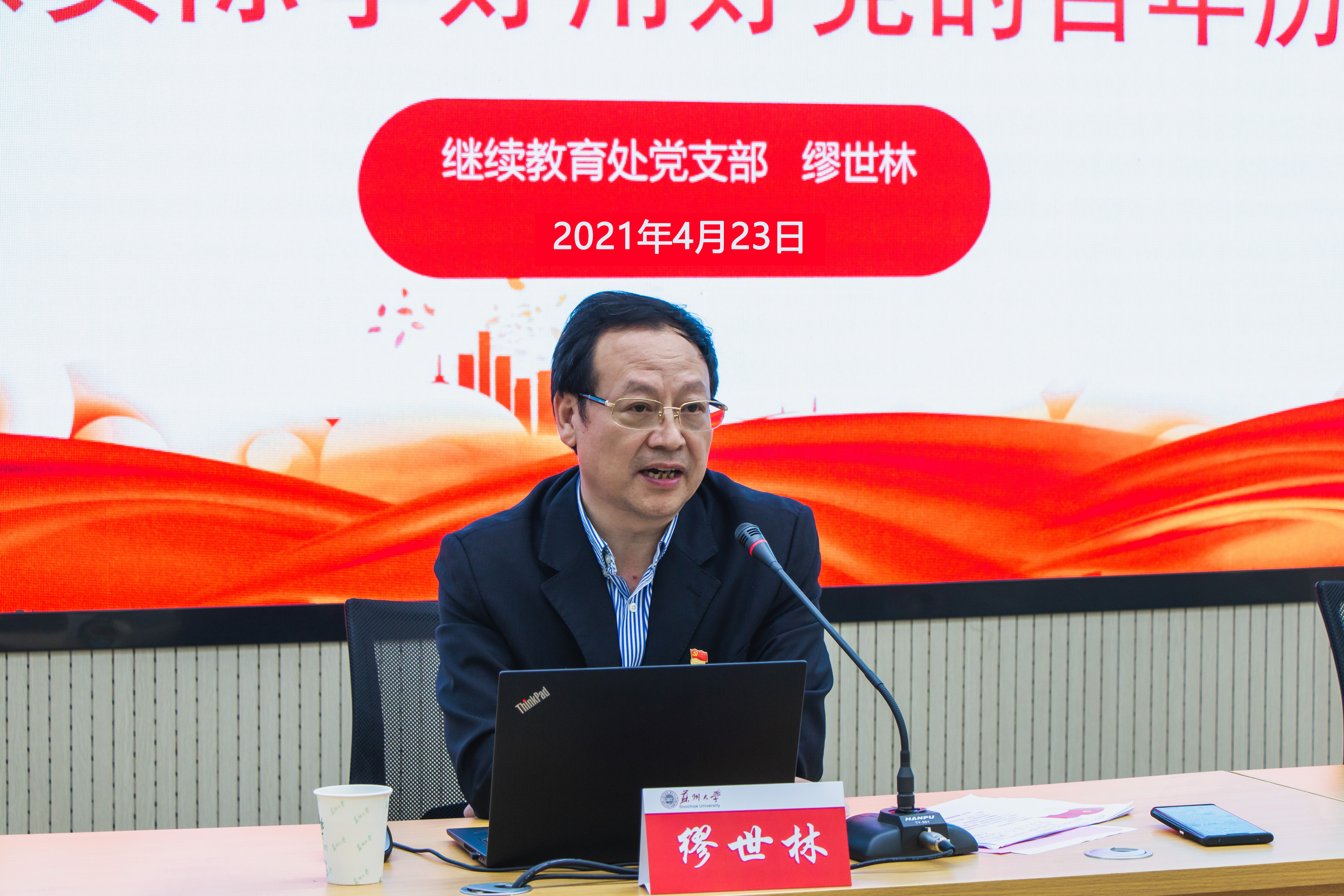 活动伊始,继续教育处党支部缪世林书记介绍活动背景,他希望大家通过学党史重温百年奋斗路,悟思想启航时代新征程。