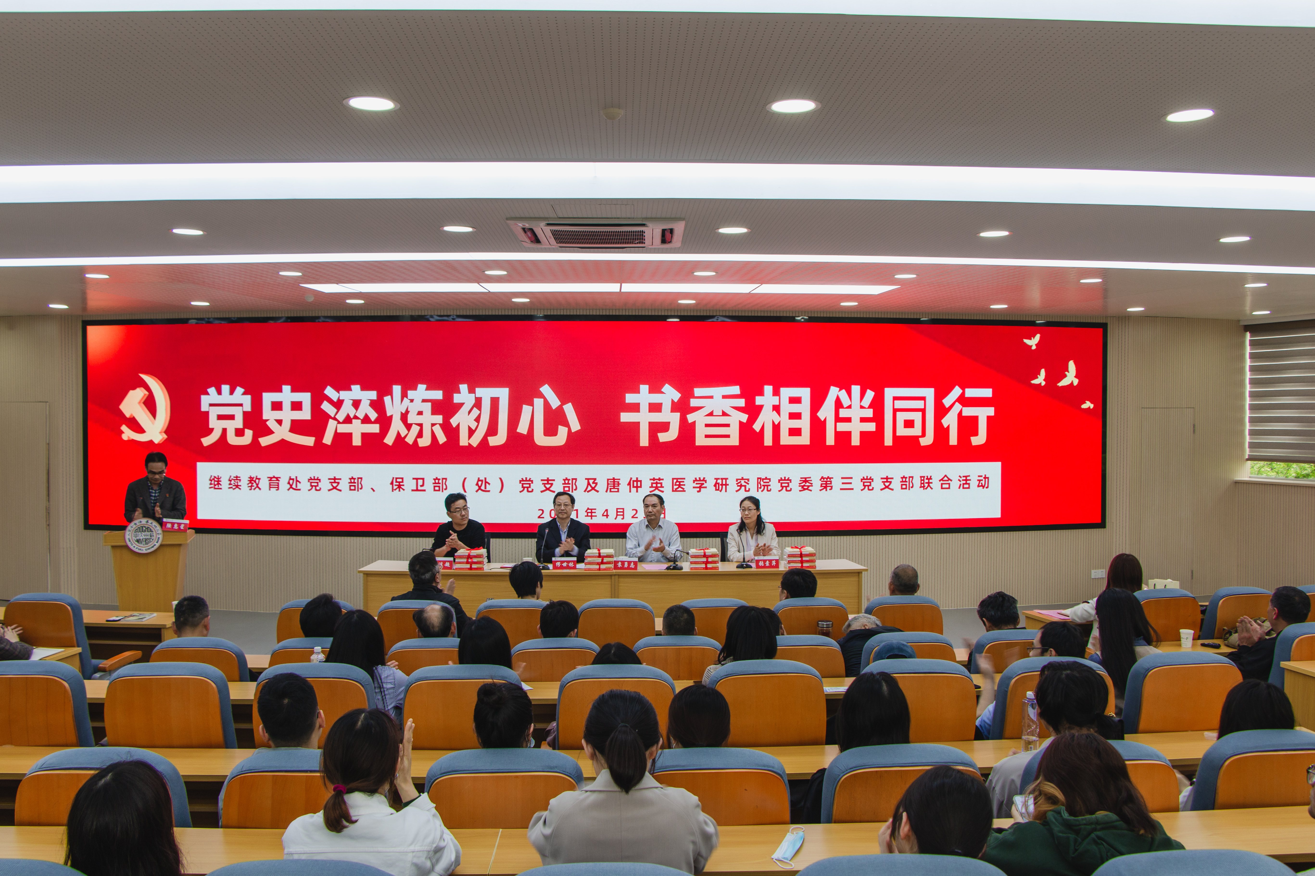 2021年4月23日世界读书日当天,为庆祝建党100周年,促进党史学习教育在基层落地生根,继续教育处党支部、保卫部(处)党支部及唐仲英医学研究院党委第三党支部联合发起“党史淬炼初心,书香相伴同行”庆祝建党100周年赠书活动,三个党支部师生、继续教育学生党员代表参加,活动由继续教育处党支部副书记陆惠星主持。
