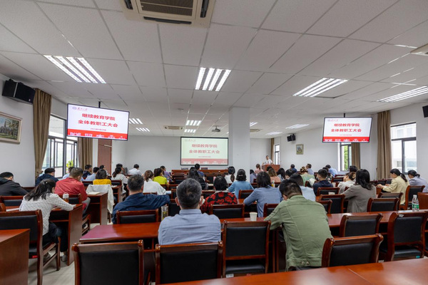2022年9月28日下午,继续教育学院新学期全体教职工大会在天赐庄校区(本部)培训中心201教室召开,会议由继续教育学院院长缪世林主持。