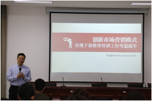 尉迟老师为我校非学历继续教育管理队伍作了题为《创新市场营销模式-实现干部教育培训工作弯道超车》的专题讲座。尉迟老师从雷义的销售之道谈起,介绍了山东大学干部教育培训工作开展情况,详细展示了学院在干部培训、市场拓展、方案设计及组织发展这四个方面进行的创新工作,剖析了运营团队如何通过创新体制机制、运作模式变革、数字化转型等手段,建立起覆盖全国的全域市场营销体系,最终推动了学校品牌和合作平台(学院)的高质量发展,实现干部教育培训工作的弯道超车。