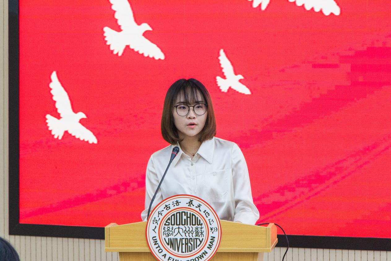 2019级结业生代表汪楚津回忆了在苏州大学求学两年来的心路旅程以及满满收获,她感谢学院领导和老师们的悉心指导,家长们的辛勤操劳以及同学们的陪伴,并借用萧伯纳的话“一个人如果不到最高峰,他就没有片刻的安宁,他也就不会感到生命的恬静和光荣。”与同学们共勉。