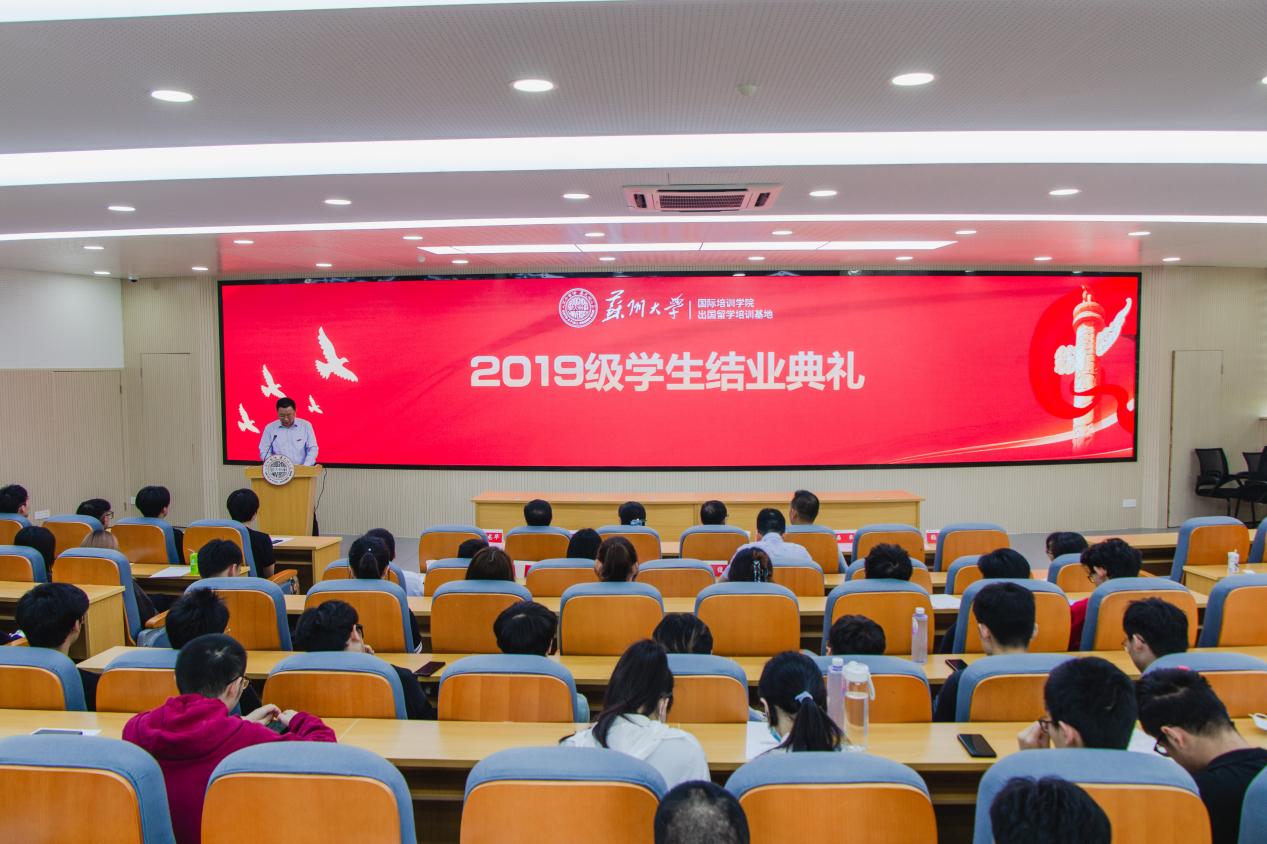 5月25日上午,苏州大学国际培训学院2019级学生结业典礼在天赐庄校区(北区)工科楼一楼报告厅举行。