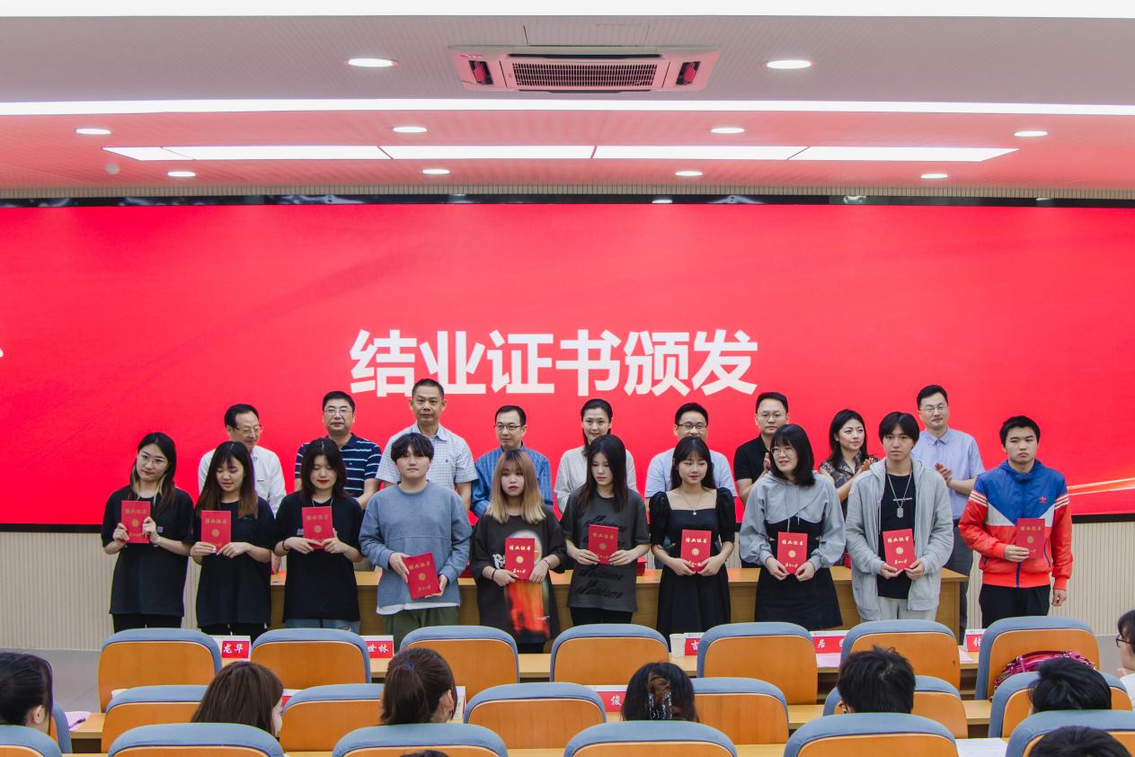 典礼最后由各学院领导、专业主任向学生们颁发荣誉证书和结业证书,并合影留念。
