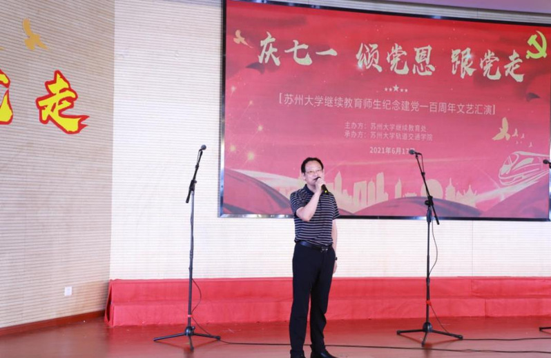 为庆祝中国共产党成立100周年,弘扬中华民族精神,讴歌中国共产党的光辉业绩。由苏州大学继续教育处主办、苏州大学轨道交通学院承办“庆祝中国共产党成立100周年”系列活动之“庆七一,颂党恩,跟党走”文艺汇演于2021年6月17日,在苏州大学阳澄湖校区交通大楼二楼报告厅隆重举行。