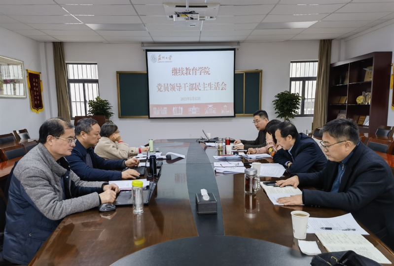 根据学校《关于认真开好2022年度党员领导干部民主生活会的通知》(苏大委〔2023〕1号)文件精神,紧扣“全面贯彻习近平新时代中国特色社会主义思想,深刻领悟‘两个确立’的决定性意义,增强‘四个意识’、坚定‘四个自信’、做到‘两个维护’,团结带领党员干部群众以奋发有为的精神贯彻落实党的二十大作出的重大决策部署”的主题,2023年2月12日上午,继续教育学院在学院南楼202会议室召开2022年度党员领导干部民主生活会。继续教育学院领导班子成员参加会议,校党委常委、副校长姚建林,校第六督导组组长黄志斌、联络员戴璇颖现场督导,继续教育学院党支部支委列席会议。会议由继续教育学院院长缪世林主持。
