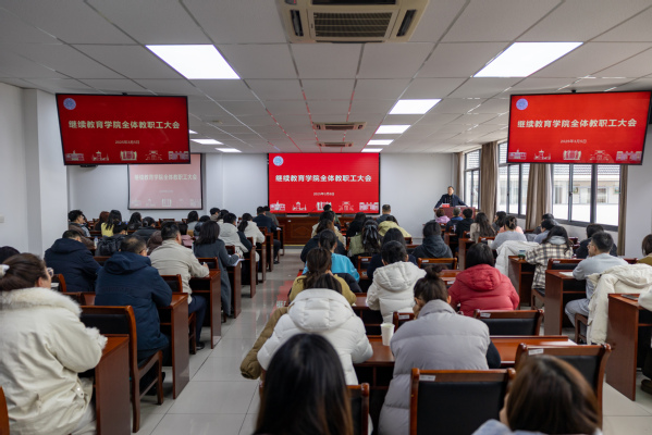 3月5日下午,继续教育学院召开全体教职工大会,会议第一阶段由继续教育学院院长缪世林主持,第二阶段由继续教育学院副院长沈晔主持,全院教职工参会。