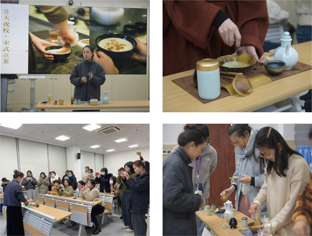 宋式点茶起源不晚于唐末五代,流行于两宋。是中国的一项非物质文化遗产,被列入了国家级非遗名录。点茶课教室内,李老师正在为学员们演示用茶筅击拂茶汤,她表示,当代很多年轻人都热爱茶文化,但是无处进行专业的学习,苏大夜校给了他们一个平台,更好地了解非遗文化。